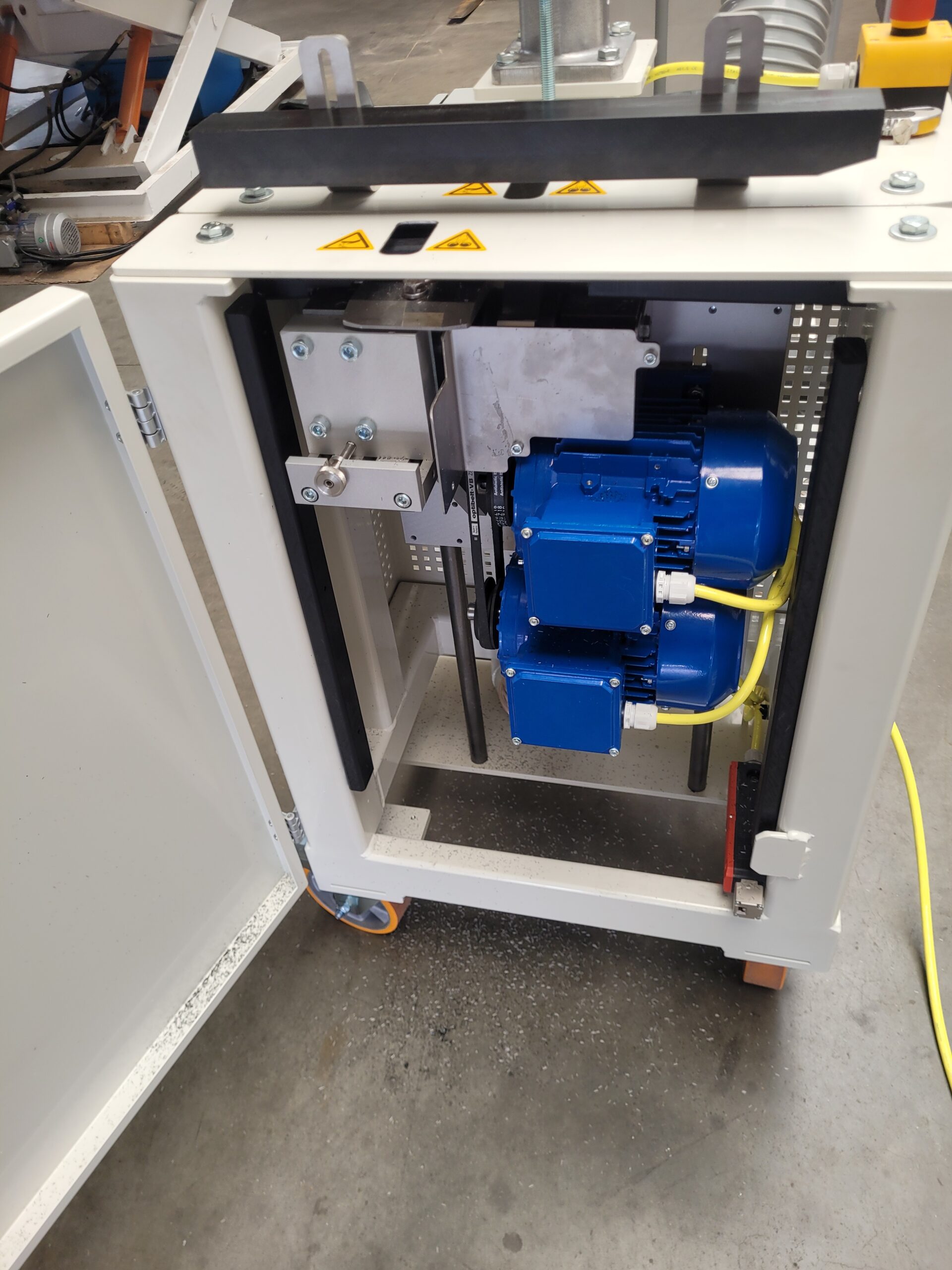 De installatie combineert een robuuste mechanische opbouw met een nauwkeurige positionering en gecontroleerde aandrijving, waardoor een constante kwaliteit in de eindlengte van de borstels wordt gegarandeerd.